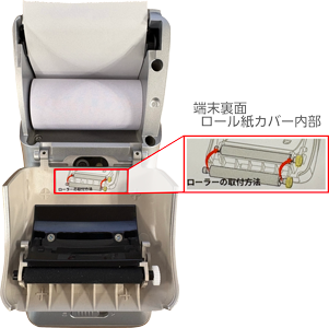 - 1. レシートロール紙の表裏が逆に設置されている可能性があります。レシートロール紙を正しく入れ直したのち、再印字を実行してください。